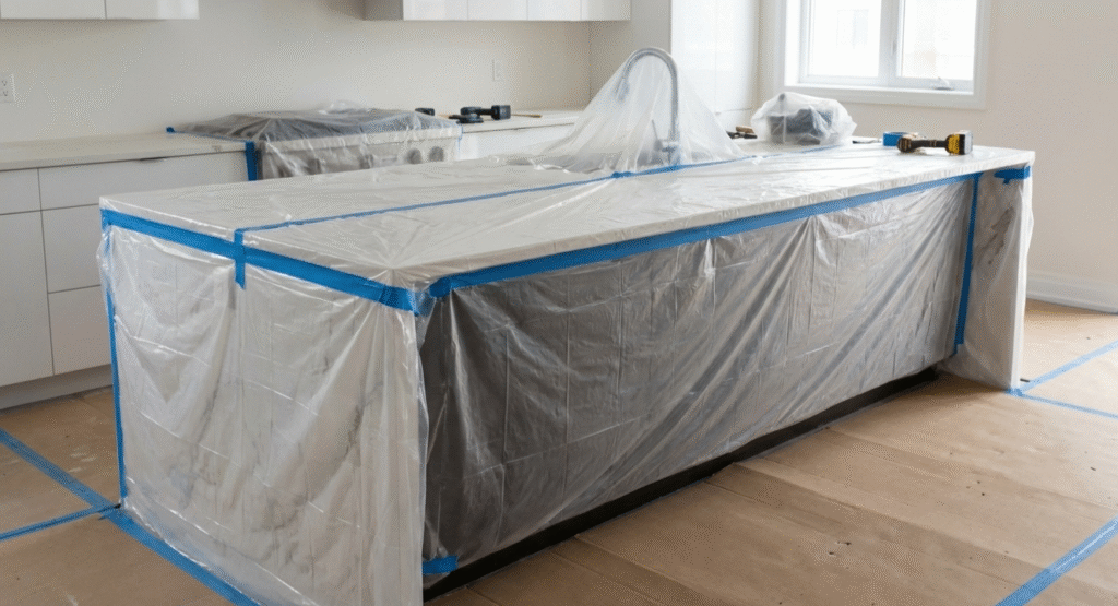 Usar lonas de alta resistência, fitas que não deixam resíduos e papelão ondulado para áreas de circulação garante que, ao final do dia, sua única surpresa seja a beleza do novo acabamento, e não um arranhão no seu piso ou móvel.